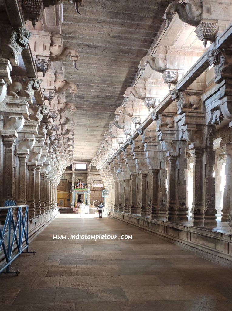 - மூன்றாம் பிரகாரத்தில் பிரம்மா,விஷ்ணு ,சிவன் மூவரும் ஒருங்கிணைந்த ஏக பாத மூர்த்தி சிற்பத்தை தரிசிக்கலாம் .குறத்தி மண்டபத்தில் நடன மங்கையர் மற்றும் குறி சொல்லும் குறத்தி போன்ற சிற்பங்கள் மிக அழகாக செதுக்கப்பட்டுள்ளன .அம்மன் சன்னதியின் பின்புறம் உள்ள ஆயிரம்கால் மண்டபத்தூணில் தொந்தியில்லாத ,புலி காலுடன் கூடிய வியாக்ர விநாயகரை தரிசிக்கிலாம் .இங்குள்ள ஊஞ்சல் மண்டபத்தில் உள்ள ரிஷபகுஞ்சர சிற்பம் விசேஷமானது .காளையை காணும்போது யானையும் ,யானையை காணும்போது காளையும் தெரியாது .மற்றும் வீணை இல்லாத சரஸ்வதி ,மேதா தட்சணாமூர்த்தி ,பஞ்சமுக விநாயகர் ஆகியவர்களும் இவ் தலத்தின் சிறப்புவாய்ந்தவர்கள் .