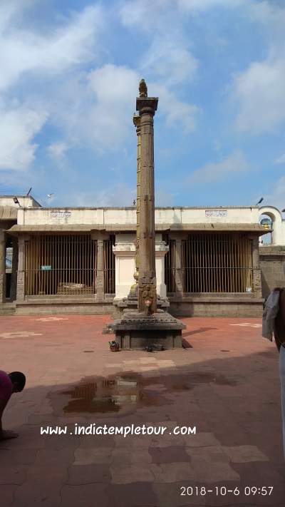 - கொடிக்கம்பத்தில் முன்னே விளக்கு கம்பம் உள்ளது அதன் முன் சிறிய யானை சிலை உள்ளது யானைக்கு நேராக விளக்கு கம்பத்தில் ஆஞ்சநேயரின் உருவம் பொறிக்கப்பட்டுள்ளது . இது இக்கோயிலின் சிறப்பை சொல்கிறது .