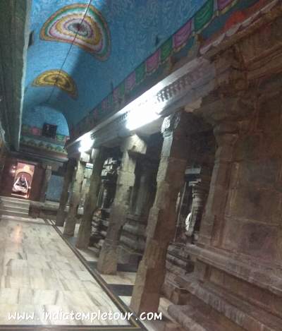 பிருங்கி முனிவரின் வேண்டுதலை ஏற்று இங்கு முப்பெரும் தேவியரும் ஒரே சன்னதியில் காட்சிதருகின்றார்கள் . மார்கழி மாதம் 45 நாட்கள் தேவியர்களுக்கு புனுகு சாற்றி மூடிவிடுவார்கள் அப்போது திரைசீலைக்கு பூஜைகள் நடைபெறும் . சுயம்பு மூர்த்தியாக இருப்பதால் அபிசேகம் கிடையாது .
