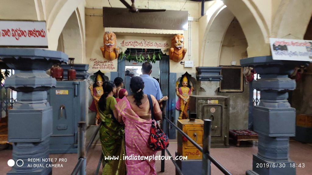 - Lord is in the form of jagan mohini keseva swamy.this is unique temple where we can see kesava swamy avatharam in the front part and jagan mohini avatharam from back side. It is a suyambu saligrama sila with 5 feet hight and width of 3 feet. from front we can see main deity with 4 hands having shanku,chakra,gada and lotus flower in them, wearing kosthuba maniharam,vanamala,crown,ear rings,yognopaveetham.from back we can see jaganmohini avatar wearing sari, blouse with hair knot,and parijatha flowers around it. On the top of idol we can see adhisesha and Ganga coming out from the feet of the idol. Nowhere else we can see such an idol.
